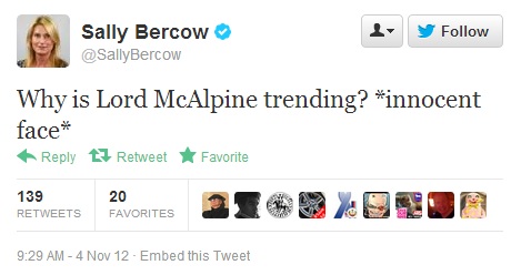 - Sally Bercow tweeted what she did and included “[innocent face]” at the end of it.