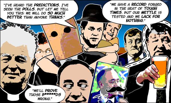 I’ll start by saying I genuinely love Greg Moodie’s art style. I don’t know why, but I love it. The stuff from before the #IndyRef, even attacking my own side, I love it. But my issue with the cartoon was the inclusion of Charles Kennedy sweating over a pint. The man’s issues with alcohol are well known and he doesn’t try to hide them. I said that I felt this cartoon was in poor taste (which may or may not be the right word in this situation).